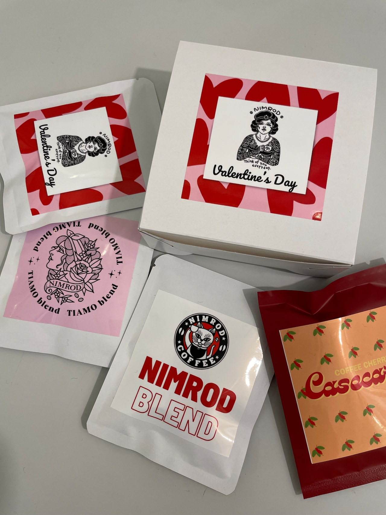 3つのdrip bag coffeeとカスカラティーが入ったギフトboxです。